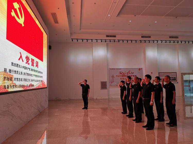 最后,直屬庫全體黨員面對黨旗舉起右拳,在黨旗下接受心靈的凈化和洗禮,重溫入黨時的決心和理想。