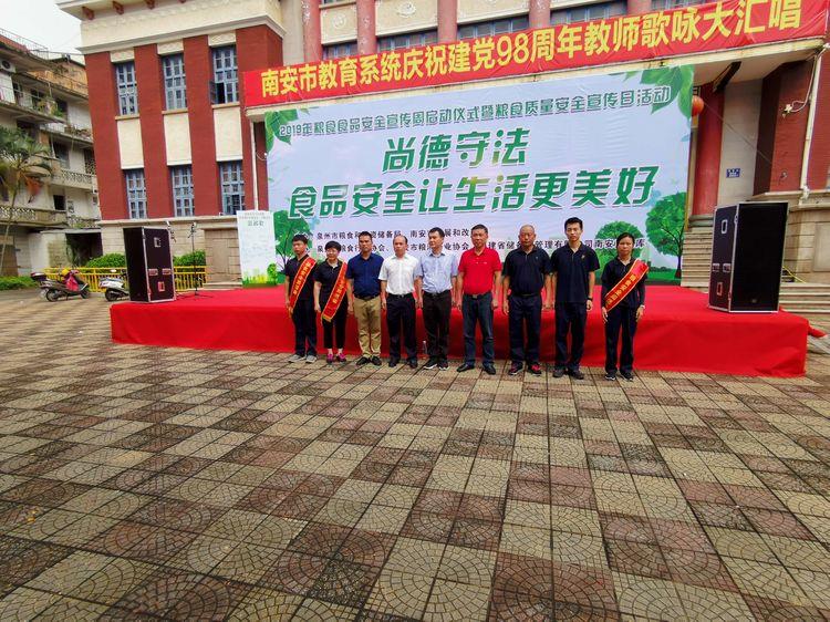 【一】6月27日上午,由泉州市糧食和物資儲(chǔ)備局、南安市發(fā)展和改革局主辦,泉州市糧食行業(yè)協(xié)會(huì)、南安市糧食行業(yè)協(xié)會(huì)、省儲(chǔ)備糧南安直屬庫(kù)共同協(xié)辦的“2019年糧食食品安全宣傳周啟動(dòng)儀式”在南安市人民會(huì)堂廣場(chǎng)舉辦。泉州市發(fā)展和改革委員會(huì)黨組成員、副主任鄭華江,南安市政府領(lǐng)導(dǎo)陳江虹,南安市發(fā)展和改革局局長(zhǎng)陳天義、副局長(zhǎng)石林海,泉州市糧食行業(yè)協(xié)會(huì)執(zhí)行會(huì)長(zhǎng)林建全、秘書長(zhǎng)孫伍銘,南安市糧油行業(yè)協(xié)會(huì)會(huì)長(zhǎng)林建德,省儲(chǔ)備糧公司南安直屬庫(kù)主任卓成加、南安市糧食購(gòu)銷公司總經(jīng)理戴澤陽(yáng)、糧油生產(chǎn)經(jīng)營(yíng)企業(yè)代表和相關(guān)工作人員等參加啟動(dòng)儀式。