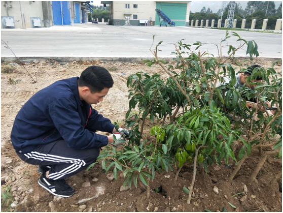 精心挑選種植樹苗(瓊A4無核荔枝)、修剪樹葉