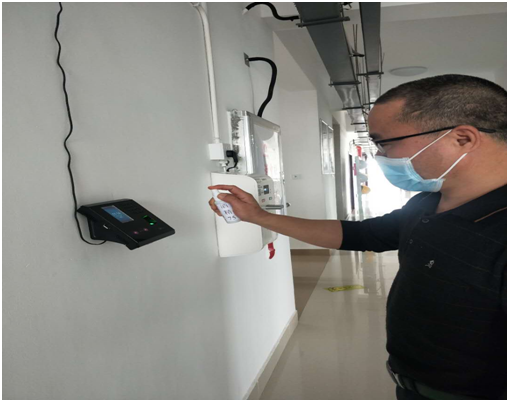 對(duì)考勤機(jī)、電梯、辦公樓周邊進(jìn)行消毒