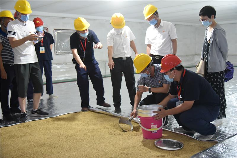 為紀(jì)念中國(guó)共產(chǎn)黨成立99周年,引導(dǎo)在黨員干部新冠肺炎疫情防控、糧食安全保障工作中走前頭、作表率,扎實(shí)做好“六穩(wěn)”工作、全面落實(shí)“六?!比蝿?wù),2020年6月28日,省直機(jī)關(guān)紀(jì)檢監(jiān)察工委、駐省發(fā)改委紀(jì)檢監(jiān)察組、省儲(chǔ)備糧公司長(zhǎng)樂(lè)直屬庫(kù)黨支部全體黨員,在省儲(chǔ)備糧公司長(zhǎng)樂(lè)庫(kù)聯(lián)合開(kāi)展“落實(shí)六穩(wěn)六保 助力糧食安全”主題黨日活動(dòng),實(shí)地考察“智慧糧庫(kù)”建設(shè)及科技儲(chǔ)糧、綠色儲(chǔ)糧技術(shù)應(yīng)用情況,到倉(cāng)內(nèi)親身體驗(yàn)了查糧情、測(cè)糧溫、篩蟲(chóng)等糧食保管員日常工作,并到中共長(zhǎng)樂(lè)第一支部舊址紀(jì)念館,緬懷革命先輩,重溫入黨誓詞。省直機(jī)關(guān)工委委員、紀(jì)檢監(jiān)察工委書(shū)記陳金城,省發(fā)改委黨組成員、駐省發(fā)改委紀(jì)檢監(jiān)察組組長(zhǎng)徐敏,省發(fā)改委黨組成員、省糧儲(chǔ)局黨組書(shū)記孫建平參加了活動(dòng)。