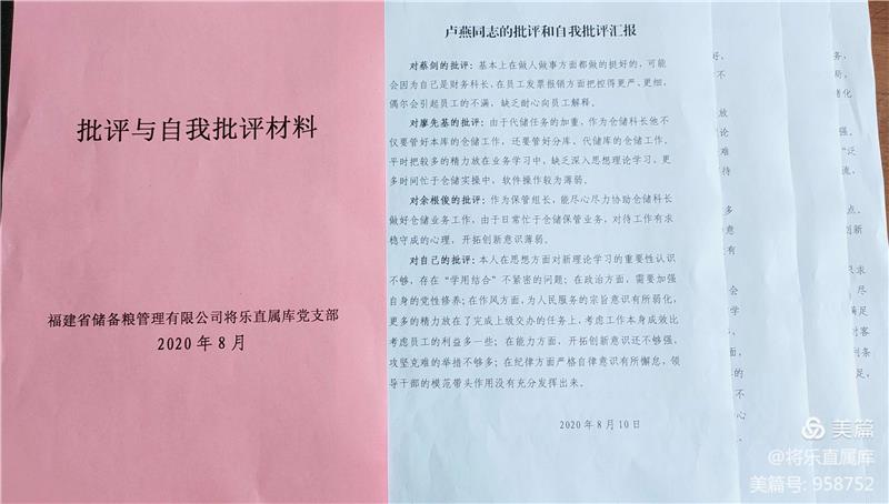 本著對(duì)自己與同志高度負(fù)責(zé)的態(tài)度,深入開(kāi)展批評(píng)與自我批評(píng)。