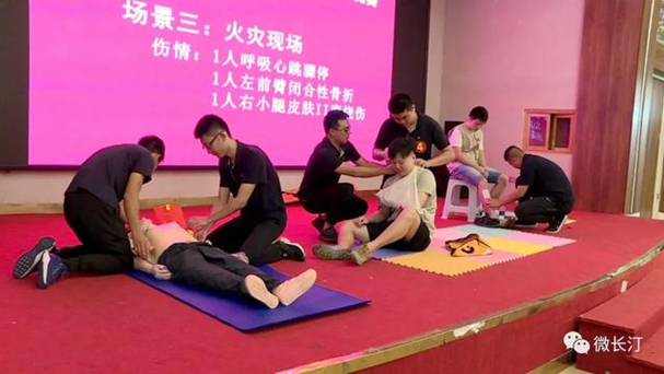 競賽分個人和團體競賽兩項,個人競賽內(nèi)容為成人心肺復(fù)蘇實操和創(chuàng)傷救護,團體競賽內(nèi)容為模擬火災(zāi)、地震災(zāi)害、交通事故現(xiàn)場等場景現(xiàn)場救護。