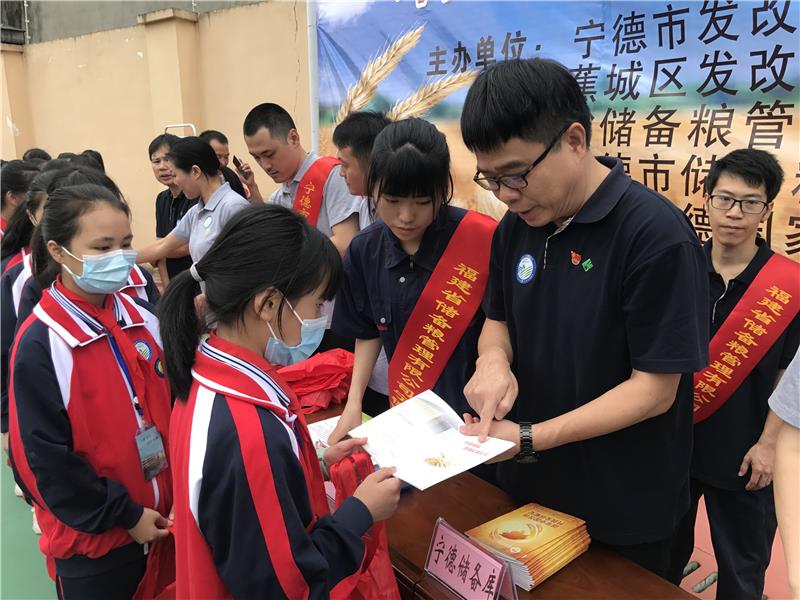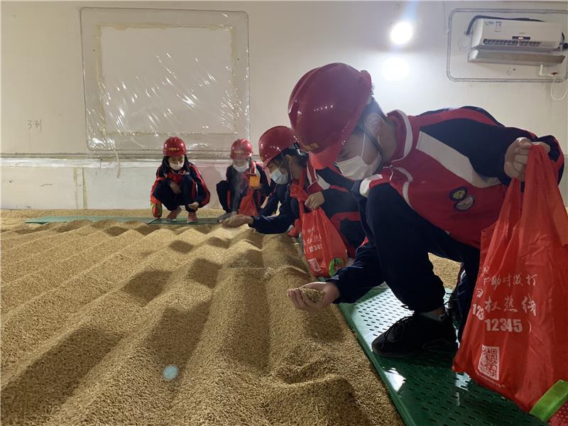 10月16日上午,寧德儲備庫聯(lián)合寧德市發(fā)改委(市糧儲局)、市農(nóng)業(yè)農(nóng)村局、市教育局、市科學(xué)技術(shù)局、市婦聯(lián)等14家單位,在福建寧德糧食儲備中心舉辦2020年世界糧食日和全國糧食安全宣傳周活動。本次活動圍繞“端牢中國飯碗 共筑全球糧安”主題,組織七都鎮(zhèn)中心小學(xué)學(xué)生進糧庫參觀學(xué)習(xí)。第一階段:由寧德庫樂大強主任主持,寧德市發(fā)改委四級調(diào)研員梁永致辭,企業(yè)代表宣讀愛糧節(jié)糧倡議書,有關(guān)單位開展宣傳活動;第二階段,在會議室,同學(xué)們聆聽了一堂關(guān)于“節(jié)約糧食 反對餐飲浪費”的小講座,倡導(dǎo)同學(xué)們勤儉節(jié)約,反對浪費的文明理念。第三階段,組織同學(xué)們參觀省庫裝有3000多噸稻谷的實倉,讓同學(xué)們近距離的接觸糧食,不少學(xué)生俯身抓起稻谷仔細端詳,紛紛感嘆“原來儲備糧是這樣存放的啊”。