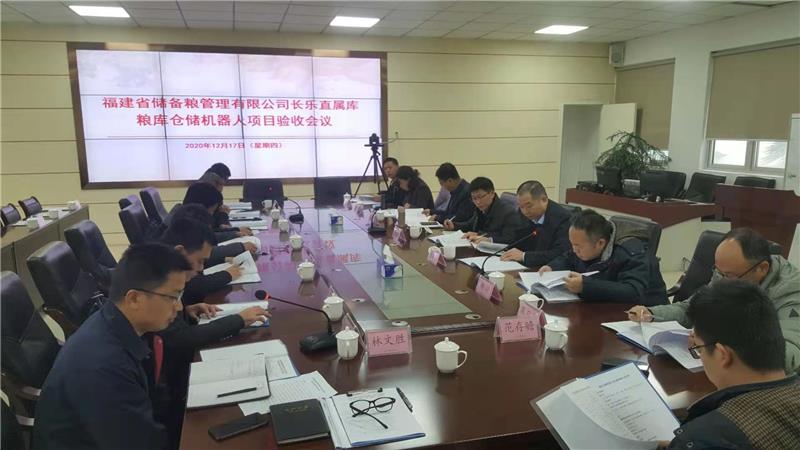 2020年12月17日下午,我?guī)旖?jīng)省公司批復(fù)同意,在長樂直屬庫組織召開了糧庫倉儲機器人項目驗收會議,邀請驗收專家對糧庫倉儲機器人項目進行現(xiàn)場驗收。省糧儲局規(guī)劃建設(shè)處三級調(diào)研員黃永言、省公司副總經(jīng)理陳加忠,建庫辦副主任麻日坪參加了會議。