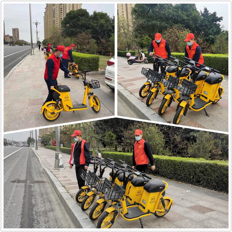 將公園周邊隨意擺放占用盲道的共享電動(dòng)車擺放整齊
