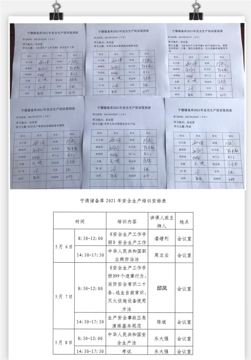 為提高從業(yè)人員安全素質(zhì),防范傷亡事故,減輕職業(yè)危害。根據(jù)省公司的有關(guān)要求,5月6日至5月8日寧德庫舉辦2021年安全生產(chǎn)培訓(xùn)。此次培訓(xùn)由庫業(yè)務(wù)骨干為全體員工講解省糧儲(chǔ)局印發(fā)的《安全生產(chǎn)工作手冊(cè)》,組織學(xué)習(xí)《中華人民共和國安全生產(chǎn)法》、《安全生產(chǎn)事故應(yīng)急演練基本規(guī)范》、《中華人民共和國職業(yè)病防治法》等有關(guān)內(nèi)容,并組織員工考試,使員工掌握必要的安全生產(chǎn)知識(shí)和安全技能,提高員工的安全生產(chǎn)意識(shí)和自我保護(hù)能力,促進(jìn)我?guī)彀踩a(chǎn)水平的提高。