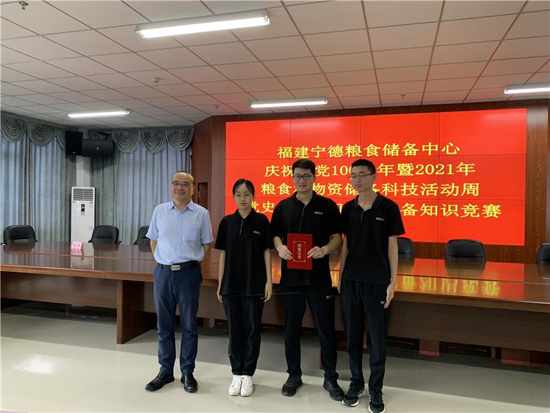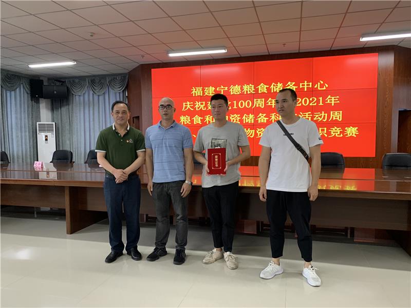 第四階段,舉辦黨的歷史、糧食和物資儲(chǔ)備知識(shí)競(jìng)賽。由中央儲(chǔ)備糧集團(tuán)福州直屬庫(kù)有限公司、福建省儲(chǔ)備糧管理有限公司寧德儲(chǔ)備庫(kù)、寧德市儲(chǔ)備糧管理有限公司、福建寧德國(guó)家糧食儲(chǔ)備庫(kù)、蕉城區(qū)第一糧食購(gòu)銷有限公司,組成5個(gè)隊(duì)進(jìn)行競(jìng)賽。經(jīng)過(guò)激烈的角逐,福建寧德國(guó)家糧食儲(chǔ)備庫(kù)、蕉城區(qū)第一糧食購(gòu)銷有限公司、福建省儲(chǔ)備糧管理有限公司寧德儲(chǔ)備庫(kù)分別榮獲一等獎(jiǎng)、二等獎(jiǎng)、三等獎(jiǎng),中央儲(chǔ)備糧集團(tuán)福州直屬庫(kù)有限公司、寧德市儲(chǔ)備糧管理有限公司榮獲優(yōu)秀組織獎(jiǎng)。