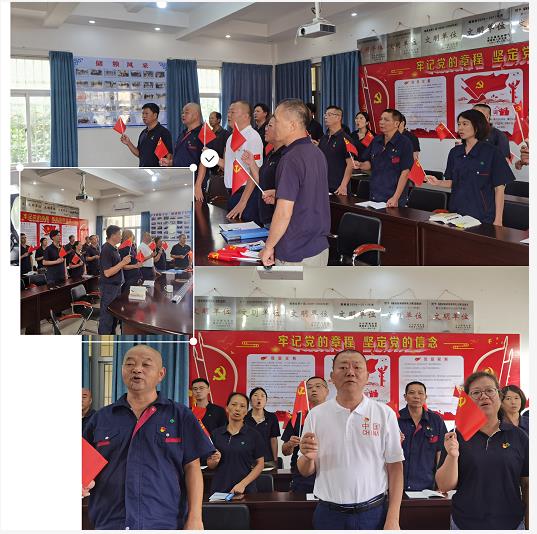 在庫黨支部書記、主任吳國瑞帶領(lǐng)下,大家高舉右手莊嚴(yán)宣誓:“我志愿加入中國共產(chǎn)黨,擁護(hù)黨的綱領(lǐng),遵守黨的章程,履行黨員義務(wù),執(zhí)行黨的決定,嚴(yán)守黨的紀(jì)律,保守黨的秘密,對黨忠誠,積極工作,為共產(chǎn)主義奮斗終身,隨時(shí)準(zhǔn)備為黨和人民犧牲一切,永不叛黨”。鏗鏘恢宏的誓詞,一字一句,神圣而豪邁,表達(dá)了黨員們對中國共產(chǎn)黨堅(jiān)定不移的忠誠和信念,彰顯了為共產(chǎn)主義奮斗終身的決心和意志。