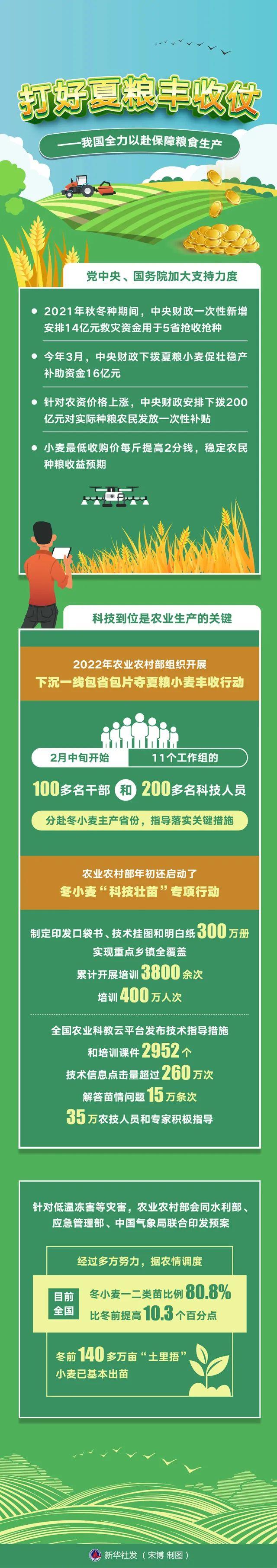為了全力以赴奪取夏糧豐收,黨中央、國務(wù)院加大支持力度。去年秋冬種期間,中央財(cái)政一次性新增安排14億元救災(zāi)資金用于5省搶收搶種。今年3月,中央財(cái)政下?lián)芟募Z小麥促壯穩(wěn)產(chǎn)補(bǔ)助資金16億元。針對(duì)農(nóng)資價(jià)格上漲,中央財(cái)政安排下?lián)?00億元對(duì)實(shí)際種糧農(nóng)民發(fā)放一次性補(bǔ)貼。小麥最低收購價(jià)每斤提高2分錢,穩(wěn)定農(nóng)民種糧收益預(yù)期。