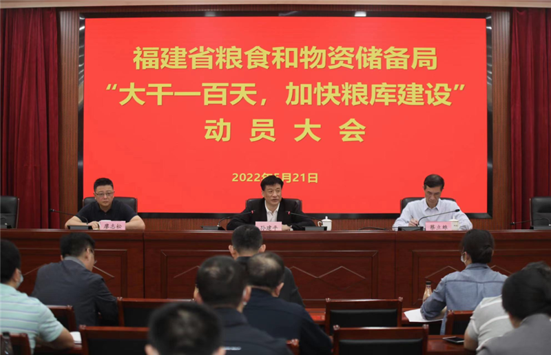 為認(rèn)真貫徹省領(lǐng)導(dǎo)批示要求,加快推進(jìn)省級糧食儲備庫項(xiàng)目建設(shè)工作,確保完成“6月30日前開工4個(gè)項(xiàng)目,9月30日前再開工4個(gè)項(xiàng)目”的既定目標(biāo)任務(wù),5月21日周六上午,省糧食和物資儲備局召開“大干一百天,加快糧庫建設(shè)”動員大會。省發(fā)改委黨組成員、一級巡視員,省糧食和物資儲備局黨組書記、局長孫建平出席會議并講話,局黨組成員、副局長蔡立雄通報(bào)糧庫建設(shè)進(jìn)展情況,黨組成員、副局長廖志松主持會議。局機(jī)關(guān)全體干部、建庫專班全體人員,省儲備糧管理有限公司全體班子成員參加。