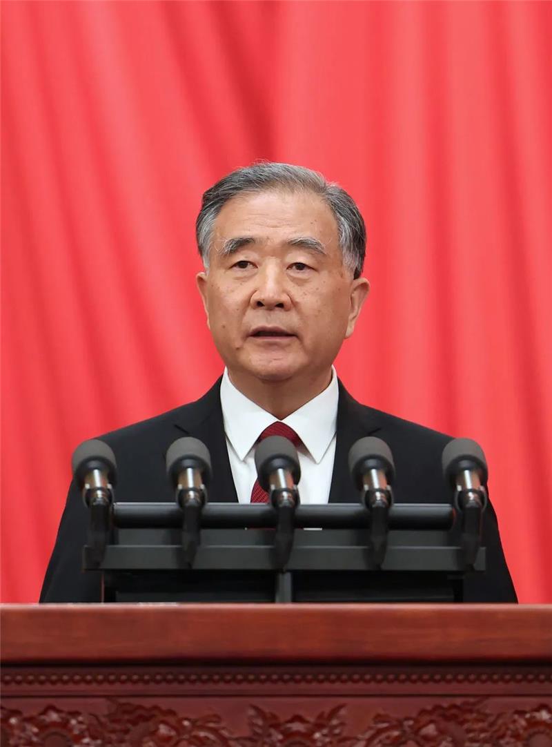 下午3時,王滬寧宣布大會開幕,全體起立,高唱中華人民共和國國歌。