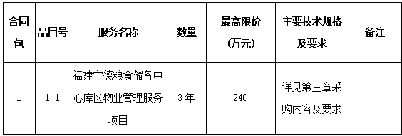 2.服務(wù)內(nèi)容:福建寧德糧食儲(chǔ)備中心庫區(qū)物業(yè)管理服務(wù)項(xiàng)目,具體詳見第三章招標(biāo)內(nèi)容及要求。