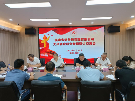 7月31日上午,福建省儲備糧管理有限公司黨委召開政治理論中心組學(xué)習(xí)會(第十六期,總第四十六期)暨大興調(diào)查研究專題研討交流會,公司黨委書記、董事長黃小勇主持會議并圍繞“強化監(jiān)督體系建設(shè)縱深推進(jìn)全面從嚴(yán)治黨”調(diào)研課題作交流,黨委副書記、總經(jīng)理劉惠標(biāo)圍繞“關(guān)于提升儲備糧質(zhì)量安全管理的研究”調(diào)研課題作交流。其他班子成員分別圍繞各自牽頭調(diào)研課題作交流,各部(室)負(fù)責(zé)人參會。
