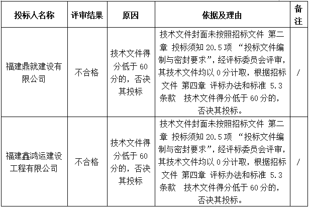 資格審查不合格或被確定為無效標、否決投標的投標人名稱及原因、理由與依據(jù)