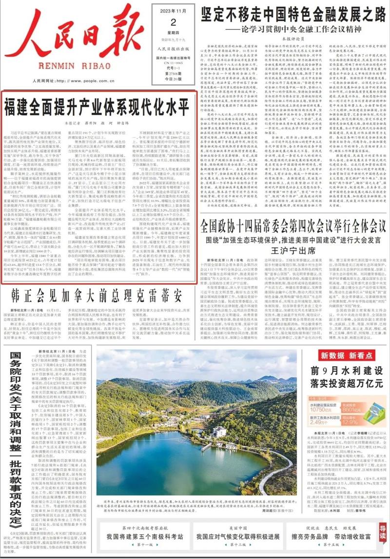 11月2日,《人民日報》頭版頭條刊發(fā)通訊《福建全面提升產(chǎn)業(yè)體系現(xiàn)代化水平》,點贊福建省委部署實施“深學爭優(yōu)、敢為爭先、實干爭效”行動,立足高質(zhì)量發(fā)展,加快實現(xiàn)產(chǎn)業(yè)體系升級,培育發(fā)展新動能的積極成效。
