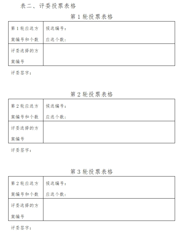 4.1.5最后一輪得票數(shù)最多的為優(yōu)先排序,若得票數(shù)相同,則以上一輪得票數(shù)多的為優(yōu)先排序,評委會依得票排序,推薦成交候選人。具體投票方法見表一、表二和表三。