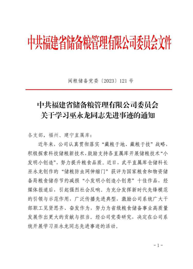 最后支部書記強(qiáng)調(diào):要把學(xué)習(xí)巫永龍同志的先進(jìn)事跡活動與當(dāng)前的各項業(yè)務(wù)工作結(jié)合起來,在工作中創(chuàng)先爭優(yōu),為儲糧事業(yè)發(fā)展作出新的貢獻(xiàn)。