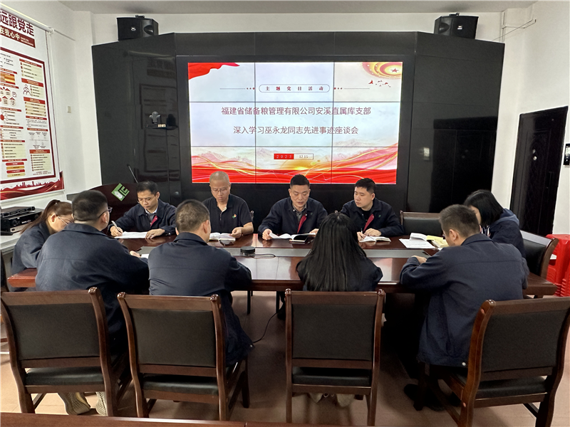 根據(jù)公司《中共福建省儲(chǔ)備糧管理有限公司委員會(huì)關(guān)于學(xué)習(xí)巫永龍同志先進(jìn)事跡的通知》(閩糧儲(chǔ)備黨委〔2023〕121號(hào))文件精神,為進(jìn)一步把學(xué)習(xí)宣傳巫永龍同志先進(jìn)事跡與深入開展學(xué)習(xí)貫徹習(xí)近平新時(shí)代中國特色社會(huì)主義思想主題教育緊密結(jié)合起來,引導(dǎo)干部職工勇于擔(dān)當(dāng)作為,積極開拓創(chuàng)新,讓為國守糧的宗旨意識(shí)深入人心,12月15日上午,安溪直屬庫黨支部組織員工開展深入學(xué)習(xí)巫永龍同志先進(jìn)事跡座談會(huì)。