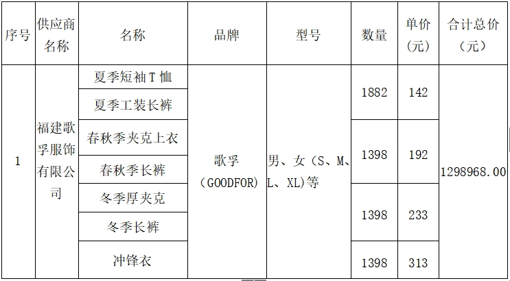 二、項(xiàng)目名稱:福建省儲(chǔ)備糧管理有限公司工服采購(gòu)項(xiàng)目