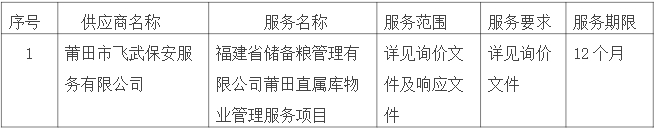福建省儲備糧管理有限公司莆田直屬庫物業(yè)管理服務項目中標公示