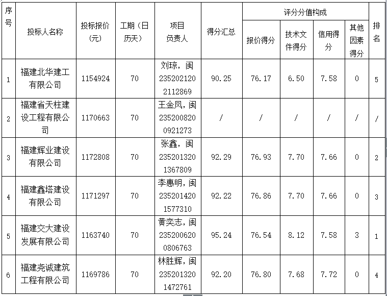第一中標(biāo)候選人名稱:福建交大建設(shè)發(fā)展有限公司