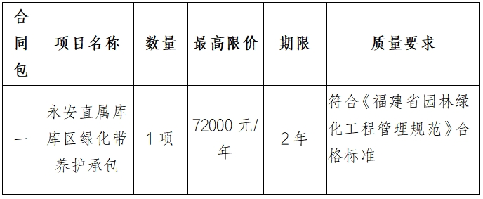 一、項(xiàng)目名稱:永安直屬庫(kù)庫(kù)區(qū)綠化帶養(yǎng)護(hù)承包