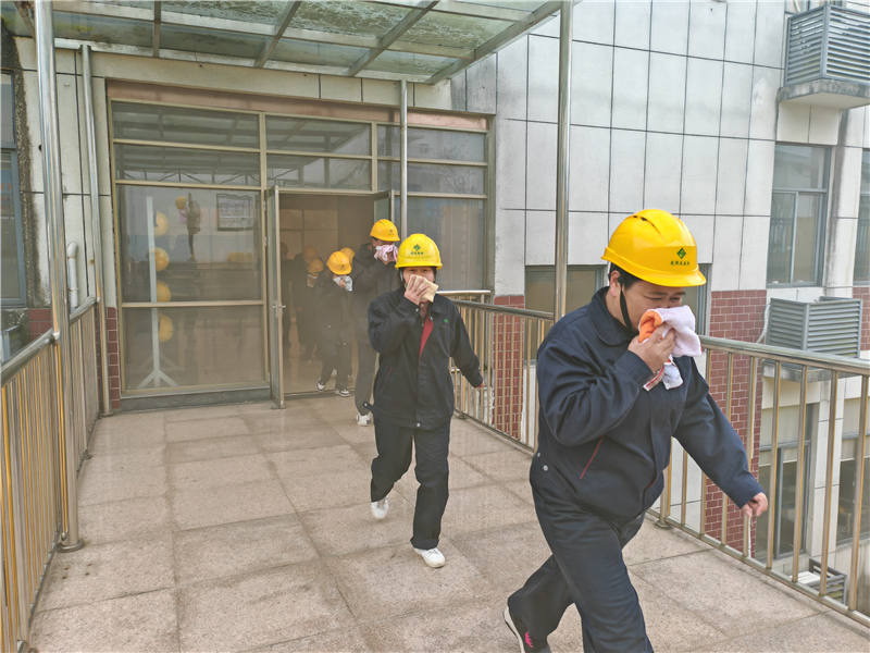 模擬辦公樓因電線短路引起火災(zāi)。隨著警鈴的響起,全體員工按照火災(zāi)逃生預(yù)案設(shè)定的路線,在消防員的組織引導(dǎo)下,大家用手捂住口鼻,低頭彎腰,迅速有序地撤離到安全地帶。