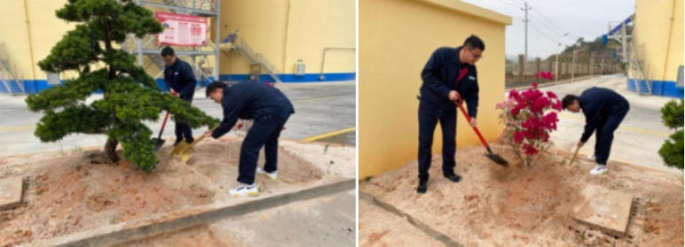 大家小心翼翼的揮鍬挖土,為樹苗準(zhǔn)備新家,有的修枝剪葉、除雜草,當(dāng)好綠化“美容師”,有的手提水桶為綠植灌溉,神彩飛揚。南安直屬庫正在合奏出一首春天的交響曲。