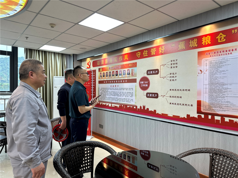 王副處長一行聽取了樂大強主任關(guān)于標(biāo)桿庫建設(shè)和“三大提升”行動進展情況的匯報,深入寧德直屬庫24號小麥倉,詳細了解糧食質(zhì)量、儲糧害蟲、糧溫以及儲糧管理、綠色儲糧技術(shù)應(yīng)用等情況,并參觀了黨建活動室、廉政警示教育室、文化長廊、檢驗室等。