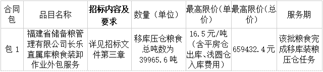 2、項(xiàng)目名稱:福建省儲(chǔ)備糧管理有限公司長樂直屬庫糧食裝卸作業(yè)外包服務(wù)