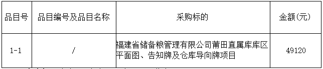 合同包1(福建省儲備糧管理有限公司莆田直屬庫庫區(qū)平面圖、告知牌及倉庫導向牌項目):