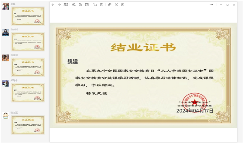 為積極響應(yīng)國(guó)家號(hào)召,將安全教育公益課活動(dòng)作為重點(diǎn)任務(wù),列入重要日程。4月10日至19日期間,福州庫(kù)組織全體員工積極收看第九個(gè)全民國(guó)家安全教育日“人人爭(zhēng)當(dāng)國(guó)安衛(wèi)士”國(guó)家安全教育公益課,并順利取得《全民國(guó)家安全教育結(jié)業(yè)證書(shū)》。