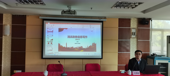 5月16日下午,省政府辦公廳信息處二級(jí)主任科員劉博裕作淺談?wù)?wù)信息寫(xiě)作授課。他就政務(wù)信息的定義、分類以及政務(wù)信息寫(xiě)作的基本要求和方法進(jìn)行講解,并結(jié)合自身工作經(jīng)歷,深入淺出、通俗易懂地講授了如何錘煉寫(xiě)作技巧、練就慧眼巧妙選題等政務(wù)信息寫(xiě)作要點(diǎn)。