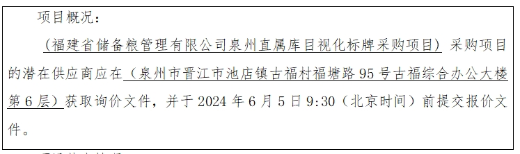 項(xiàng)目名稱:福建省儲(chǔ)備糧管理有限公司泉州直屬庫(kù)目視化標(biāo)牌采購(gòu)項(xiàng)目