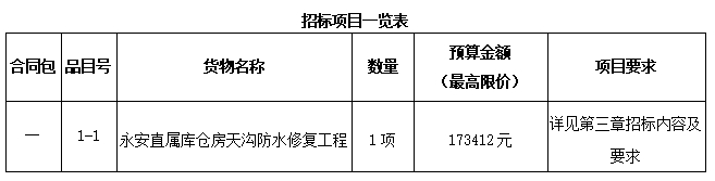 本公司受福建省儲(chǔ)備糧管理有限公司永安直屬庫委托,就永安直屬庫倉房天溝防水修復(fù)工程進(jìn)行競爭性談判,邀請智耀(福建)建設(shè)有限公司、福建建航建設(shè)有限公司、福建有我建設(shè)發(fā)展有限公司參與,請接到邀請且符合本項(xiàng)目資格條件的報(bào)價(jià)人參與談判報(bào)價(jià)。