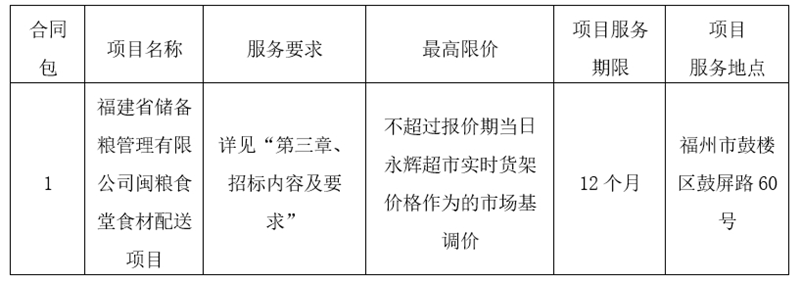 一、項(xiàng)目名稱(chēng):福建省儲(chǔ)備糧管理有限公司閩糧食堂食材配送項(xiàng)目