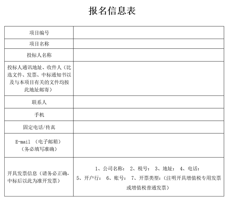 注:投標(biāo)人以上條件中有任何一條不滿(mǎn)足,其投標(biāo)文件將被拒絕。投標(biāo)人必須提交以上文件或證明的復(fù)印件,所有復(fù)印件應(yīng)是最新(有效)、清晰,并加蓋投標(biāo)人公章,原件備查。