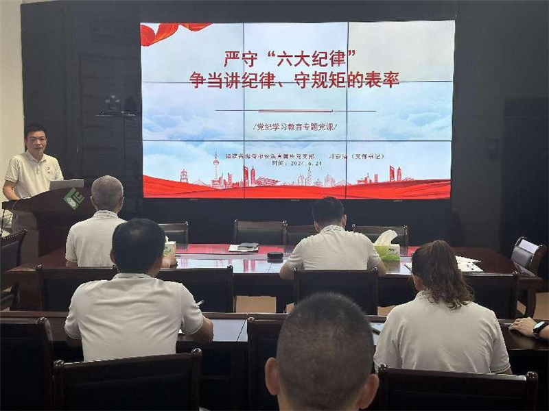 為深入學(xué)習(xí)貫徹習(xí)近平總書記關(guān)于黨紀(jì)學(xué)習(xí)教育的重要講話和重要指示精神,引導(dǎo)黨員干部真正做到學(xué)紀(jì)、知紀(jì)、明紀(jì)、守紀(jì),推動(dòng)黨紀(jì)學(xué)習(xí)教育走深走實(shí),6月24日下午,安溪直屬庫黨支部書記葉宗清為支部全體黨員上了一堂以《嚴(yán)守“六大紀(jì)律”,爭當(dāng)講紀(jì)律、守規(guī)矩的表率》為主題的黨紀(jì)學(xué)習(xí)教育專題黨課。