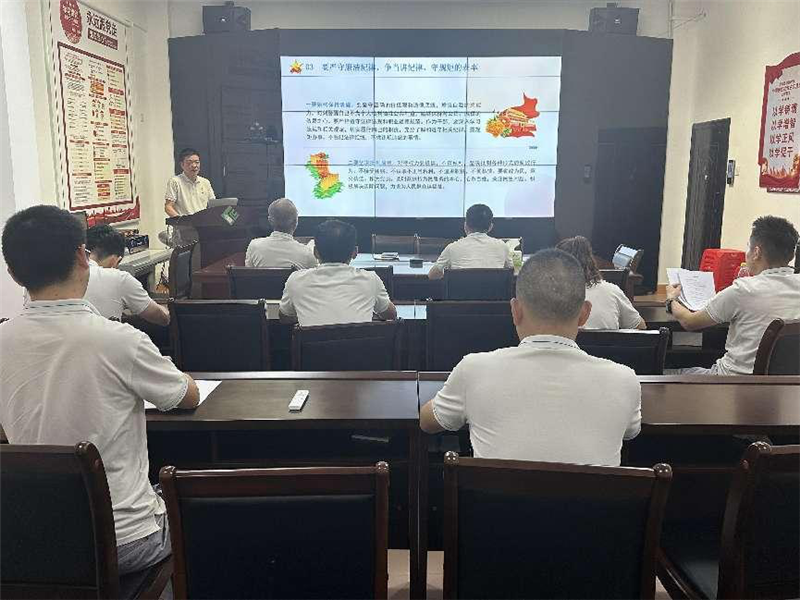 支部書記葉宗清從政治紀(jì)律、組織紀(jì)律、廉潔紀(jì)律、群眾紀(jì)律、工作紀(jì)律、生活紀(jì)律“六大紀(jì)律”講起,要求每一個(gè)黨員干部都必須不折不扣地執(zhí)行黨的每一項(xiàng)紀(jì)律,堅(jiān)持最高標(biāo)準(zhǔn),守住紀(jì)律底線,并教育引導(dǎo)大家遵章守紀(jì)、錘煉黨性,做一名合格黨員。