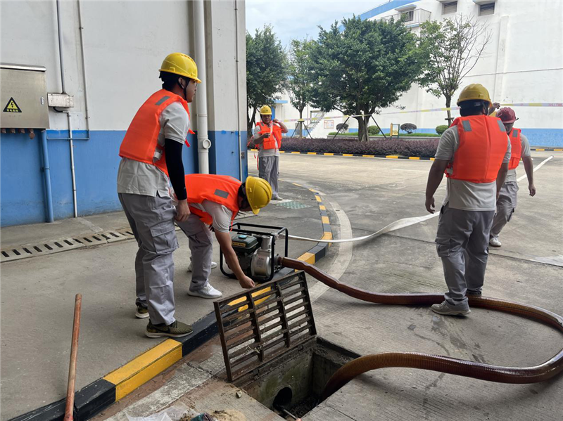 隨后,在省儲備糧長樂直屬庫開展防汛應(yīng)急演練,發(fā)現(xiàn)汛情第一時間報警聯(lián)絡(luò)組撥打防汛電話并請求中儲糧長樂直屬庫開展外部增援,搶險灌包組啟用防洪擋板、防水布、防汛沙袋在庫區(qū)及倉房大門處砌起防汛堤壩,阻止雨水漫入,搶險排水組人員對積水坑進(jìn)行檢查,并利用抽水泵迅速排澇,搶險電氣組對排水設(shè)備進(jìn)行啟動檢查,關(guān)閉總配電柜及附近電源。