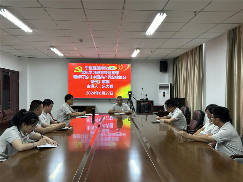 6月27日上午,寧德直屬庫黨支部書記樂大強(qiáng)以“新修訂的《中國共產(chǎn)黨紀(jì)律處分條例》解讀”為題,為全體黨員干部職工講授黨紀(jì)學(xué)習(xí)教育專題黨課。他強(qiáng)調(diào),要深學(xué)篤行習(xí)近平總書記關(guān)于全面加強(qiáng)黨的紀(jì)律建設(shè)的重要論述,以高度的政治自覺、思想自覺和行動(dòng)自覺做到學(xué)紀(jì)、知紀(jì)、明紀(jì)、守紀(jì),以案為鑒、警鐘長鳴,筑牢信仰之基,涵養(yǎng)敬畏之心。