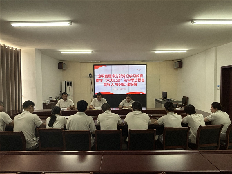 為深入開展黨紀學(xué)習教育,進一步加強漳平直屬庫全體干部職工的紀律意識,推進黨紀學(xué)習教育走深走實,真正做到學(xué)紀、知紀、明紀、守紀,6月21日下午,漳平直屬庫支部書記陳樟華以《恪守“六大紀律” 筑牢思想根基 管好人 守好庫 儲好糧》為主題為全體干部職工講授黨紀學(xué)習教育專題黨課。