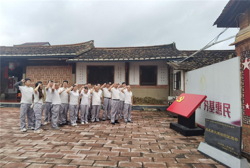 在“五座厝交通站舊址”門口,全體黨員面對鮮紅的黨旗,高舉右手,重溫入黨誓詞,場面莊嚴(yán)肅穆,誓言鏗鏘有力。
