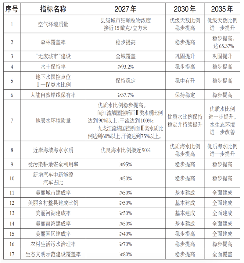 美麗福建建設(shè)主要指標(biāo)