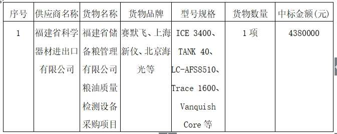 二、項目名稱:福建省儲備糧管理有限公司糧油質(zhì)量檢測設(shè)備采購項目