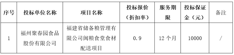項(xiàng)目名稱:福建省儲(chǔ)備糧管理有限公司閩糧食堂食材配送項(xiàng)目(重新比選);