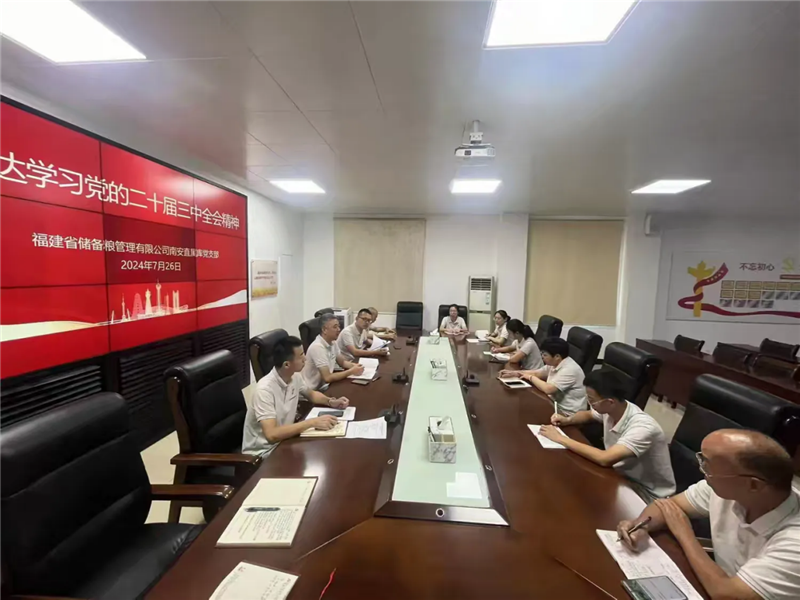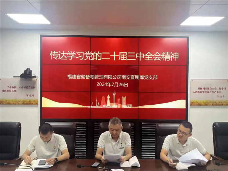 7月26日,南安直屬庫(kù)召開(kāi)會(huì)議,傳達(dá)學(xué)習(xí)黨的二十屆三中全會(huì)精神和省委常委會(huì)(擴(kuò)大)會(huì)議、省糧儲(chǔ)局黨組(擴(kuò)大)會(huì)議、省公司黨委(擴(kuò)大)會(huì)議精神,研究貫徹落實(shí)意見(jiàn)。支部書記、主任卓芳華主持會(huì)議并講話,全體員工參加會(huì)議。