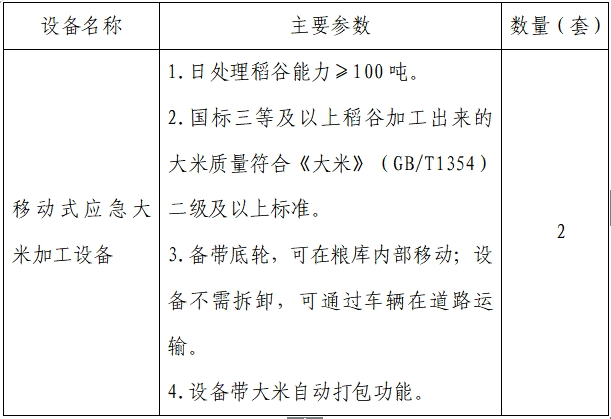 (一)項目名稱福建省儲備糧管理有限公司移動式應急大米加工設備采購項目。