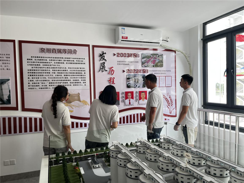 漳州直屬庫一行參觀了泉州直屬庫目視化建設(shè)情況,詳細(xì)了解泉州庫的發(fā)展歷程及淺圓倉在安全管理、倉房結(jié)構(gòu)、儲糧性能、氣密性能、機(jī)械設(shè)備、進(jìn)出倉環(huán)節(jié)等方面的知識和技術(shù)要領(lǐng)。